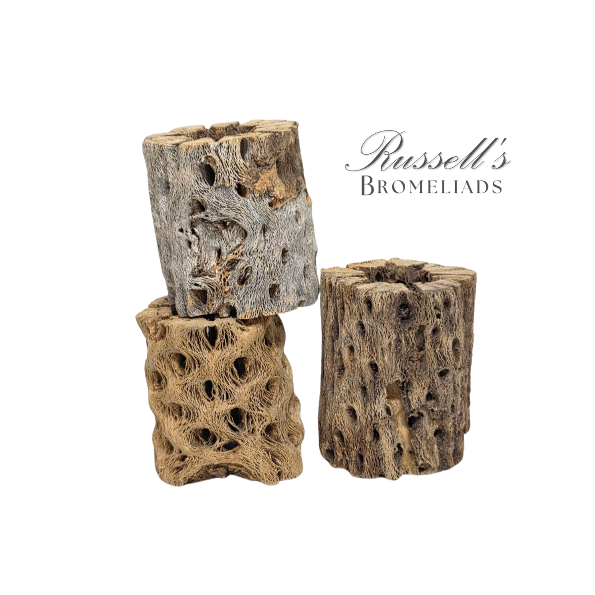 An all-natural type of wood with a rustic feel that comes in the rough shape of a hollow tube with various openings throughout. Although they are derived from a type of cactus, cholla are smooth and have no splinters on them. Each piece is unique and looks exquisite! Sometimes used as a decoration in a terrarium or aquarium, we like to use them as stands for our air plants. They range from 2 – 3 inches in diameter and are about 3 inches tall.